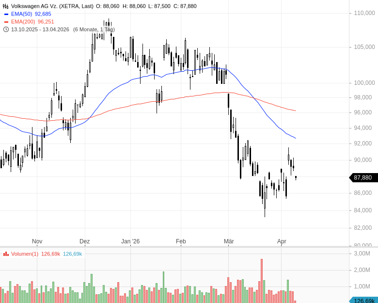 Fazit: Volkswagen gelingt es, sich in einem rückläufigen Weltmarkt operativ zu behaupten und Marktanteile zu sichern. Die starke Entwicklung in Europa sowie der wachsende Auftragsbestand geben Zuversicht. Gleichzeitig offenbaren die massiven Rückgänge im Elektrogeschäft außerhalb Europas auch die Schwächen. Die Impulse für den Kurs dürften sich in Grenzen halten.
