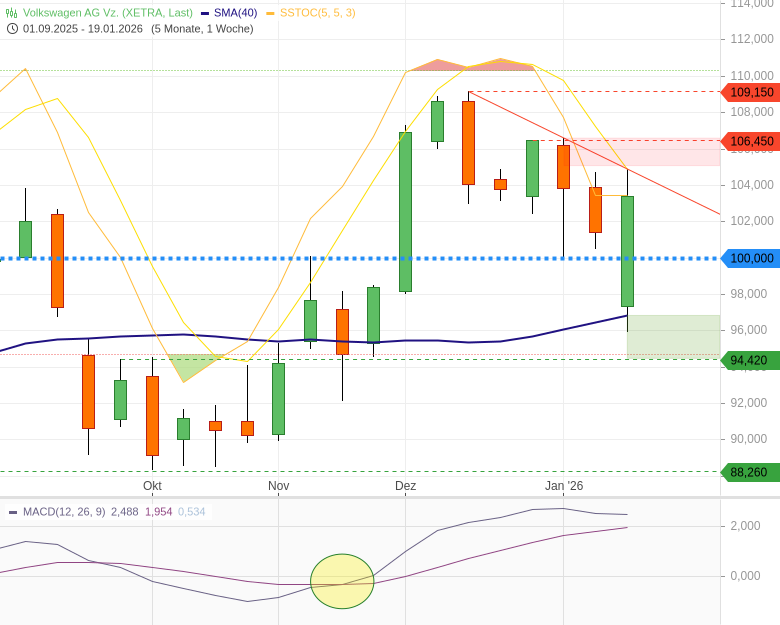 Mein Fazit: Die Vorzugsaktie der Volkswagen AG meldet sich eindrucksvoll zurück. Die Kombination aus politischer Entspannung, starken Analystenstimmen und einem klar verbesserten Chartbild spricht für weiter steigende Kurse. Trader behalten die 100-EUR-Marke als Schlüsselunterstützung im Blick, darüber bleibt die Aktie klar ein Long-Kandidat.