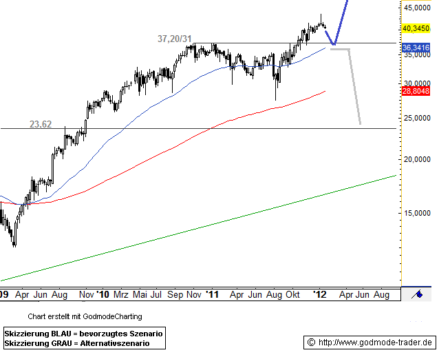 Sollte der Wert allerdings unter 37,20 Euro abfallen, droht eine Verkaufswelle in Richtung 23,62 Euro.