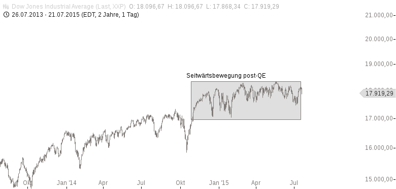 Die Dow Jones Industriewerte haben schon wieder versucht, sich von der Schwerkraft zu lösen, aber erfolglos. Der Widerstand bei 18.200 Punkten stellt sich erneut als Bollwerk gegen alle Ambitionen der Bullen heraus: