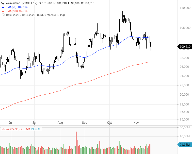 - Walmart Inc. - WKN: 860853 - ISIN: US9311421039 - Kurs: 100,610 $ (NYSE)