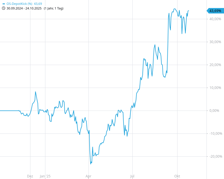 Anschließend starte ich ein neues Musterdepot – wieder mit konservativeren Basiswerten und klarem Performancefokus bei kalkulierbarem Risiko. "Lass uns den Erfolg meines Depots wiederholen", rufe ich Dir zu. Sei bei meinem ersten Trade dabei – ich halte Dich auf dem Laufenden.