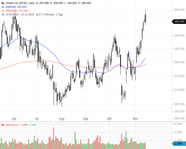 - Chubb Ltd. - WKN: A0Q636 - ISIN: CH0044328745 - Kurs: 295,490 $ (NYSE)