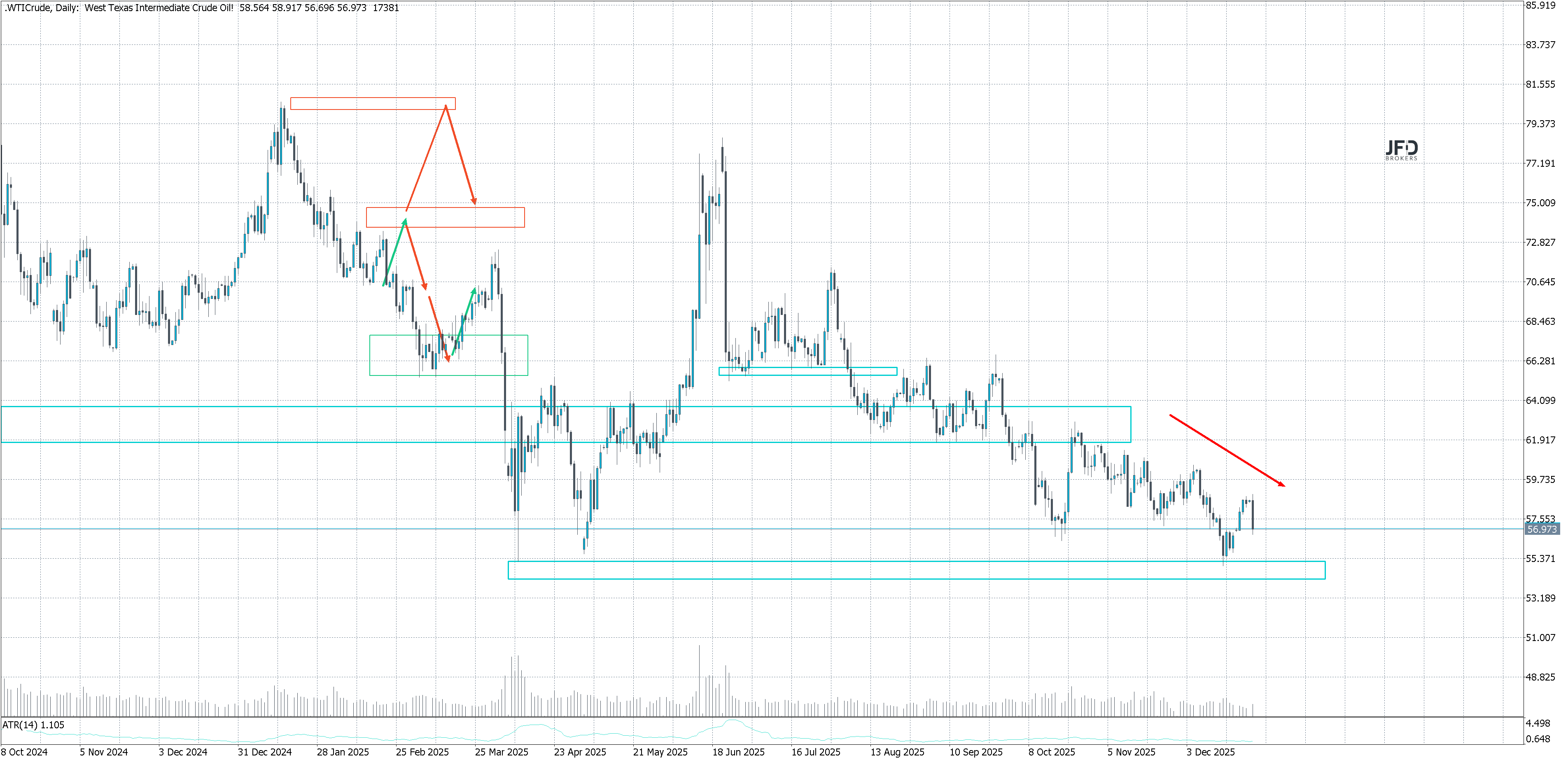 - WTI ÖlKursstand: 56,973 $/bbl. (JFD Brokers) - Zum Zeitpunkt der Veröffentlichung