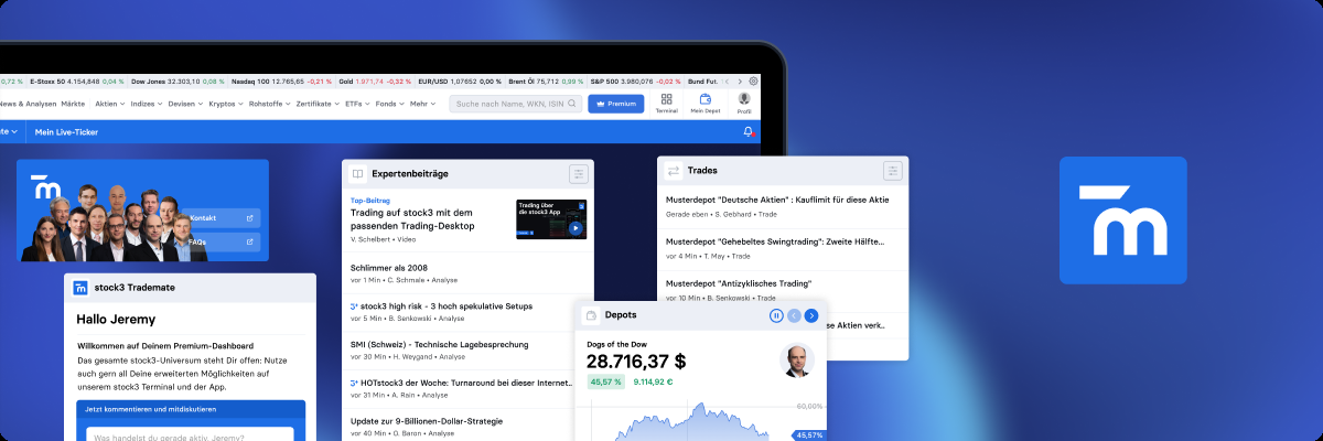 stock3 Trademate richtet sich an alle, die neben hilfreichen Tipps zur Analyse von Aktienkursen auch den Austausch mit unseren erfahrenen Experten suchen und sich über konkrete Handelsideen freuen.